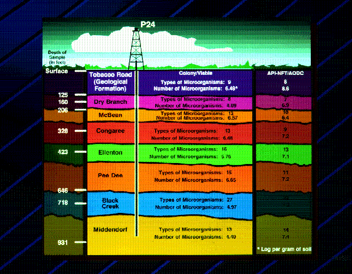 The U.S. Dept of Energy (DOE) Subsurface Microbial Culture Collection (SMCC) contains nearly 10,000 strains of microorganisms isolated from terrestrial subsurface environments. Many of the cultures in the collection were isolated during subsurface drilling at the Savannah River Site (SRS) near Aiken, SC. During drilling, sterilized plexiglass insert tubes sealed with Teflon were placed into the sampling barrels and tracer technologies were incorporated to insure the microbiological integrity of the cored sediments. Sediments were removed from the sampling barrel and immediately extruded into a nitrogen-flushed glove bag. The outer two-thirds of each core was aseptically pared away, and only the core’s center portion was used for microbiological study (Phelps et al. 1987, 1989, Fliermans and Balkwill, 1989).