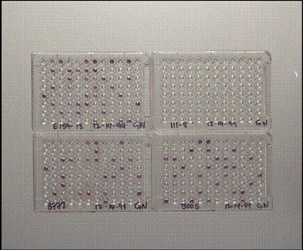 Before inoculation into Biolog GN Microplatesä , SMCC isolates were grown at 25oC on 50% TSA with sterile 3mM sodium thioglycolate swabbed onto the plate surface. Sodium thioglycolate was used to inhibit capsule formation since these isolates often form capsules when grown on laboratory media. The capsular material frequently caused false positives wells when capsule formation was not controlled in the inoculum. When sufficient plate growth was noted (SMCC isolates are often slow growers and can take up to a week for abundant plate growth), the isolates were suspended in 0.85% saline and inoculated into Biolog GN Microplatesä (150ul per well) at a transmittance level of 70% (+/- 4%). More turbid inoculum routinely caused false positive wells over the entire plate (including A1). The Biolog plates were incubated in Whirlpack bags at 25oC for varying incubation times, depending upon the incubation time required for sufficient growth of the isolate on 50% TSA. Biologä plates were read using the Biolog Microstation Systemä and Biolog ML3ä software. Biolog’s identification and similarity coefficient were noted, and the Biologä genus ID was compared to the 16s genus ID. If Biologä identified more than one species per genus, the similarity coefficients of the species were added to give a genus-only similarity coefficient.