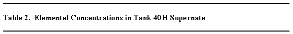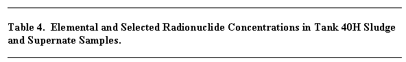 Table 3 in the Appendix includes the measured actinide concentrations in the dried sludge slurry from Tank 40H. The uranium concentration measured ~1.7 wt %, again, slightly lower than the ~3 wt % in the Tank 51H sludge measured by Hay and Bibler. Likewise, the other radionuclide concentrations are also lower. For example, the 90Sr concentration average 375 m Ci/g in Tank 40H compared to 564 m Ci/g in the Tank 51H sludge.